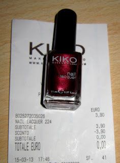 E' quello che ho preso gratis col codice che Kiko genera sulla pagina facebook: il nail lacquer n°224.