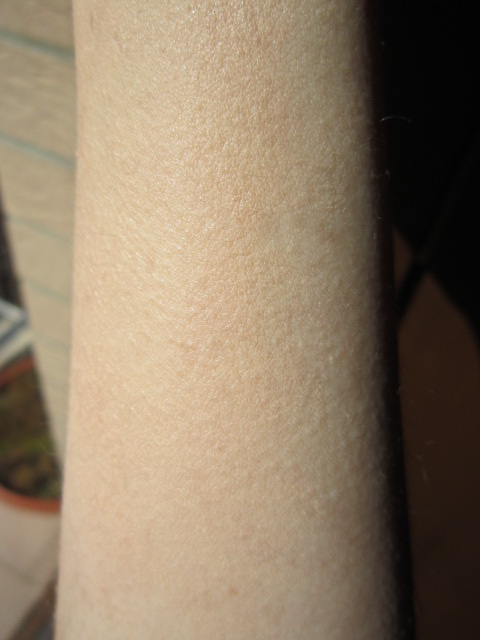 Ha una buona coprenza ed è molto versatile, poiché in realtà la possiamo modificare a seconda del metodo di applicazione. Per un effetto più naturale io preferisco applicarlo con un spugnetta in lattice, per renderlo più coprente invece basta usare un pennello da fondotinta. Copre bene rossori ed imperfezioni, vedete nella foto come il piccolo neo che ho sull'avambraccio sparisca una volta steso il prodotto: