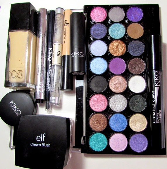 -Mayelline Fondotinta Fit me 105 natural ivory (vedete dalla foto che purtroppo ossidandosi mi crea stacco col collo, ora lo mescolo a un fondo bianco per schiarirlo un filo oppure lo uso sia sul viso che sul collo)