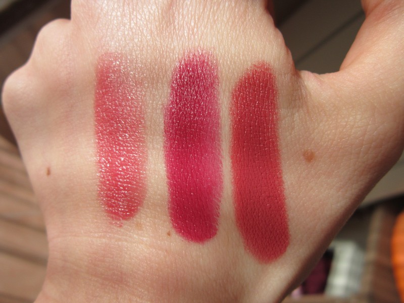 Sempre da sinistra verso destra: Crystal Sheer Lipstick 413, Velvet Mat 611, Velvet Mat 612