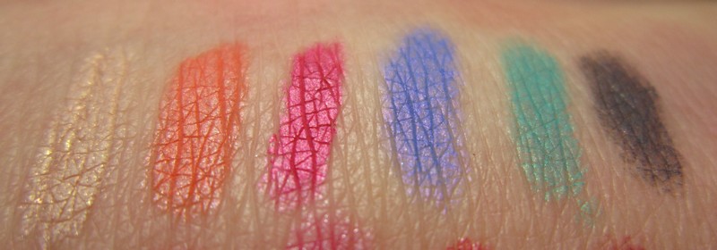 Non mi sono sembrate molto pigmentate, ma sono wet&dry, bisogna vedere come rendono da bagnate. Sotto trovate gli swatches della palette 04, quella che mi aveva più incuriosito dall'anteprima.