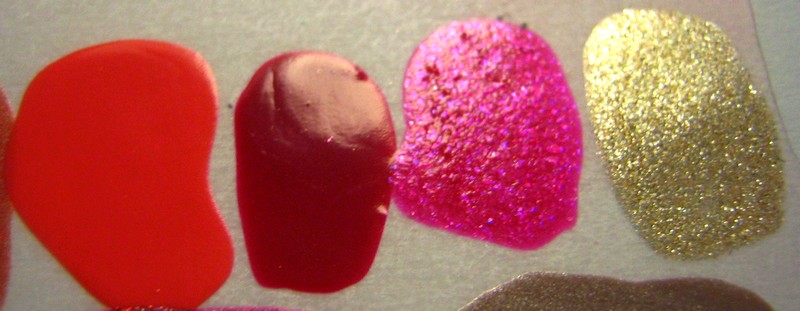 Il 417 è un bel nude delicato, il 419 un corallo abbastanza acceso, il 421 è un allegro fuxia con riflessi viola.
