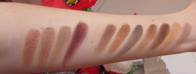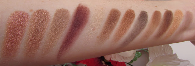 Le tonalità contenute nella palette sono sulle tonalità del rosa e del marrone, abbiamo poi un dorato, un paio di malva, un borgogna e due illuminanti, un color vaniglia completamente mat e un burro perlato molto bello.