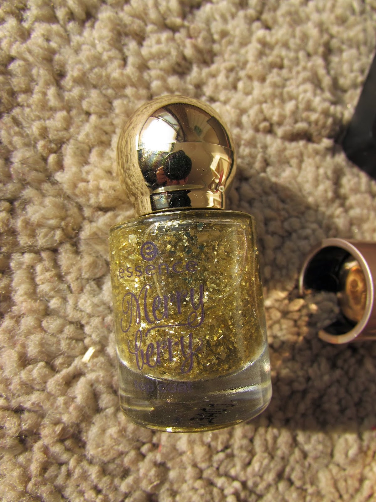 Questo è un flakie top coat con pagliuzze dorate assolutamente adatto alle festività invernali.